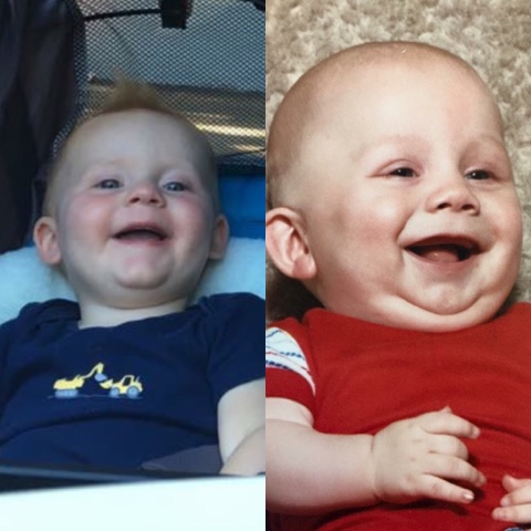 Zachy with a baby picture of Marty for comparison. Can you see it?!