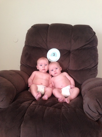 Three months old! I love being home with these two and watching them grow up. They make me so happy and I'm so honored to be their mom. They are super smiley, especially Landon, and love getting out and going places. I have lots of fun with them. Love my twiners!
